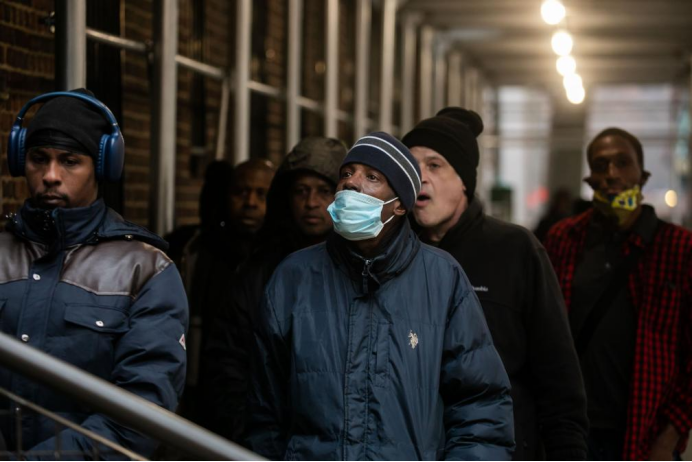 24 декабря 2023 года в Нью-Йорке, США, люди выстраивались в очередь в «Нью-Йоркской общественной продовольственной кладовке» для получения бесплатного продовольствия.