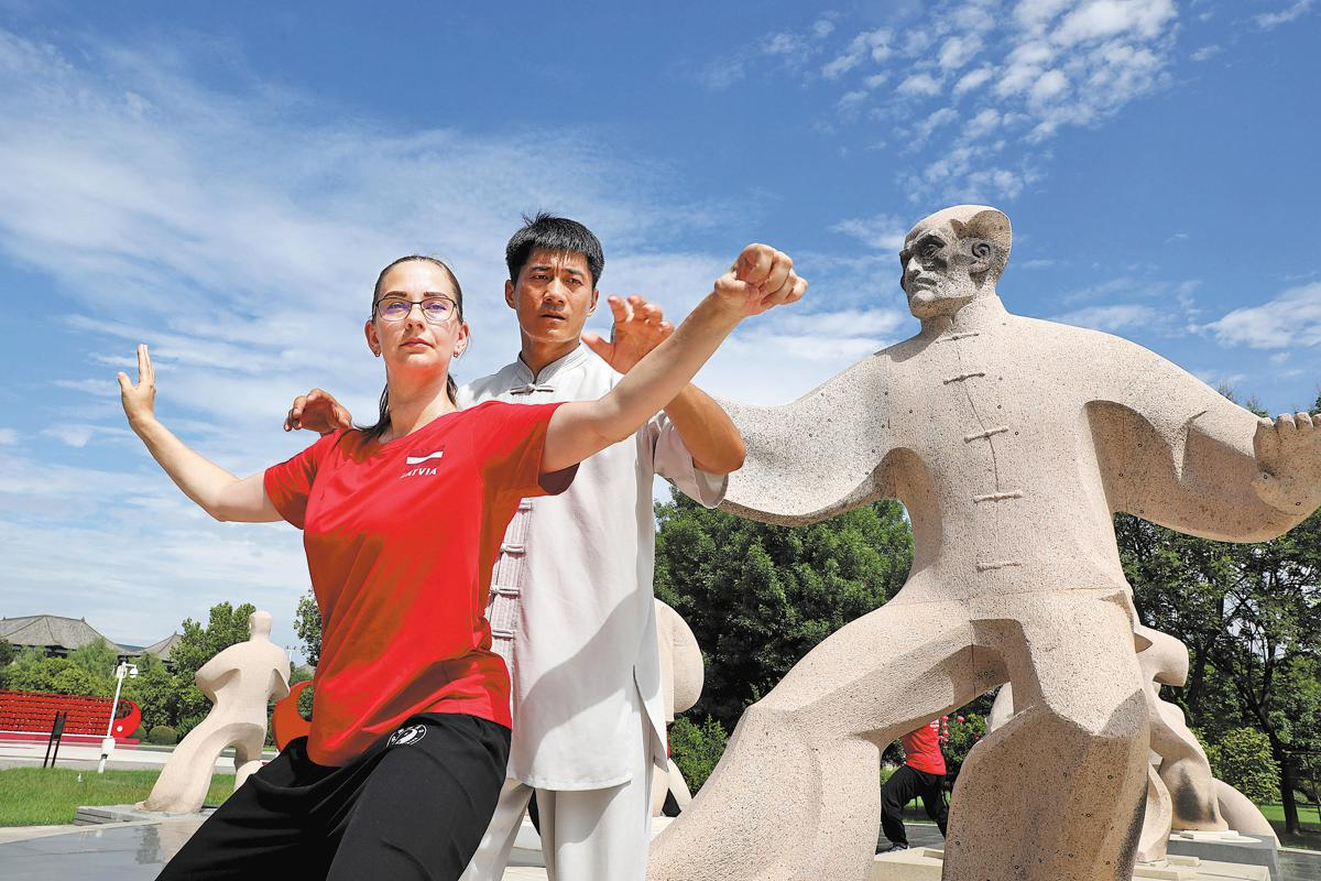 Практикующие тайцзицюань по всему миру отмечают первый Международный день тайцзицюань Мастер тайцзицюань Чжэн Инцюань обучает ученика из Латвии в Чэньцзягоу, провинция Хэнань. В тени возвышающегося музея тайцзицюань в деревне Чэньцзягоу в провинции Хэнань в центральном Китае бесчисленные ...